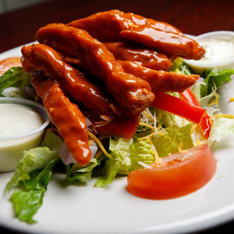 Chicken fingers shaken in your choice of sauce, lettuce, tomato, peppers, onions & cheddar cheese