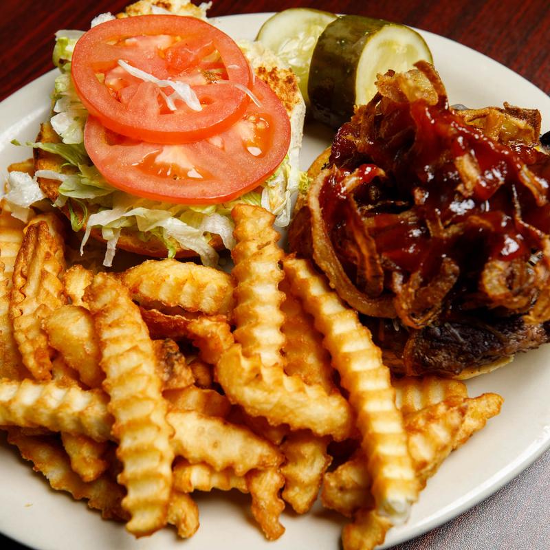 Polish sausage burger topped with sauerkraut, Krupnik mustard & Swiss cheese served with fries