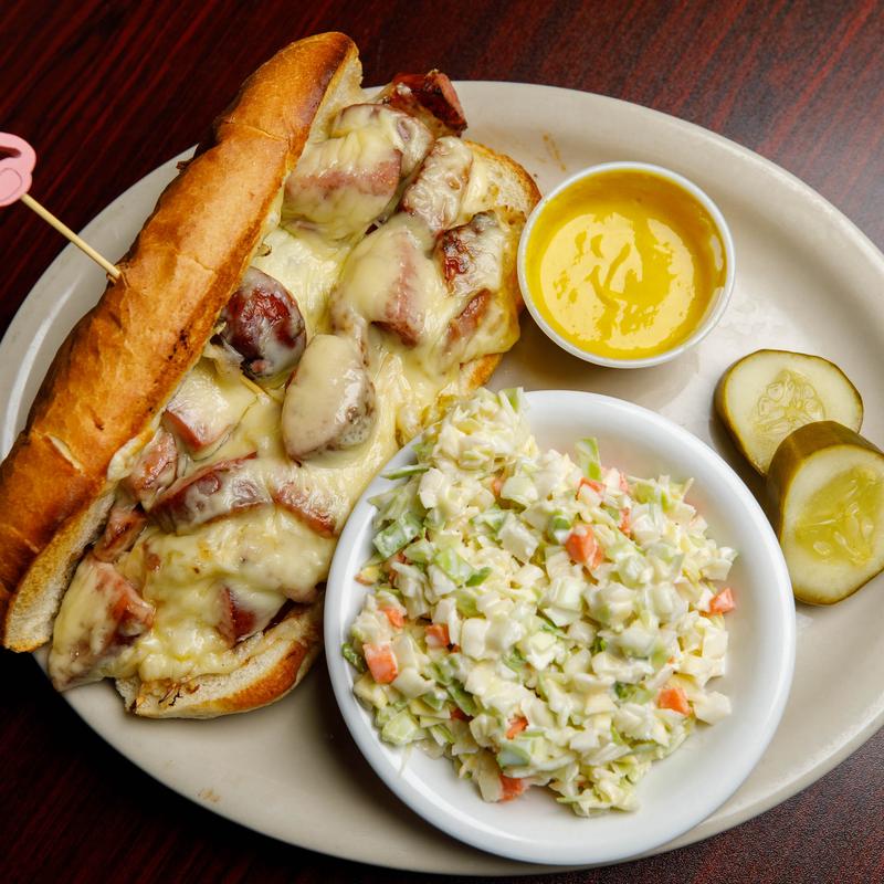 Smoked Polish sausage cooked up with sauerkraut & Swiss cheese